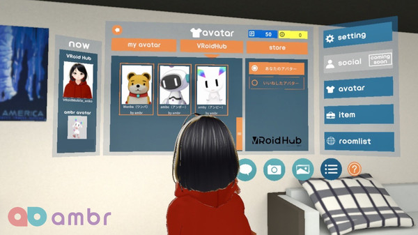 ようこそ、ambrの世界へ。ambrは、どこからでも人々が集まって一緒に楽しむことができる新しい仮想世界です。VRデバイスを通じて、ambrにアクセスしましょう。アバターは気に入ったものを選ぶことも、あなた自身がつくったアバターを利用することもできます。ambrでは、誰もが自分の仮想空間を簡単にひらくことができます。様々なユーザーの空間に参加したり、自分で空間をひらいてみましょう。また、ambrでは様々なアイテムを楽しむことができます。色んなアイテムを試してみましょう。はじまったばかりのambrは、皆さんと一緒にこれからも広がっていきます。この世界を一緒に楽しみましょう。