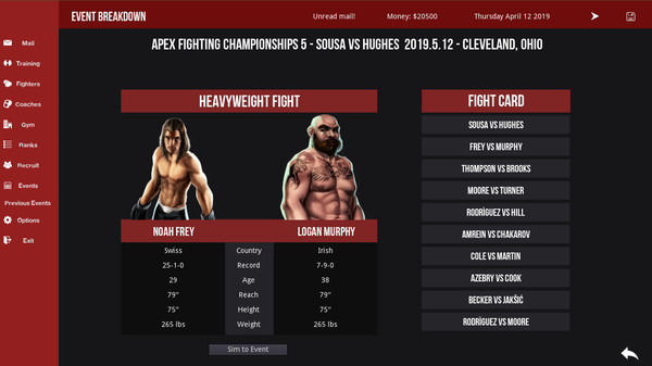 Manage your own gym, train fighters and chase championships! Control every aspect of your fighter's training to build the perfect weapon - all while expanding your roster to dominate the competition.