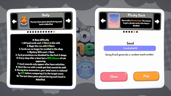 The chess roguelike deckbuilder. Solo Chess is a cozy strategy game where you play chess-themed cards on a 3×3 grid, trigger piece effects, and earn points through clever combos. Build your deck with pets and food to conquer waves of unique battles.