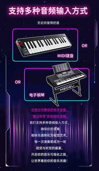 An innovative music visualization tool designed for pianists. Through the interaction with the piano keyboard, the software can generate special effects in real time, add visual elements to the performance, and create a multi-sensory music experience.