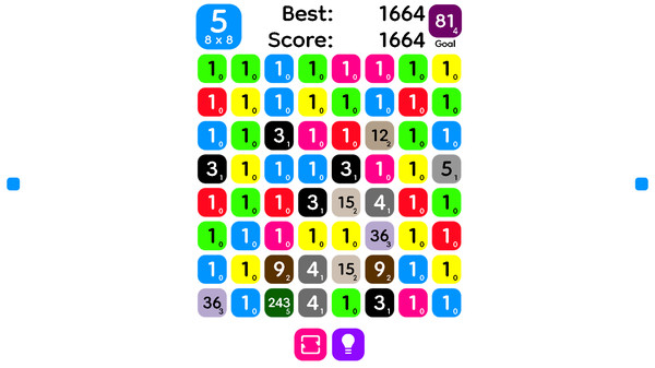 Num One: Revised Edition is a mathematical twist on a match-3 puzzle game. Combine and level up numbers, allowing them to swap further distances. 1s make 3s, 3s, make 9s, 9s make 27s, etc. Can you make a 2187?