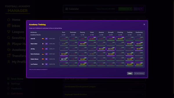 Scout young players, discover their strengths, and bring them into your academy. Help them grow through training, negotiate transfers when the time is right, and use each success to build your reputation in the football world.