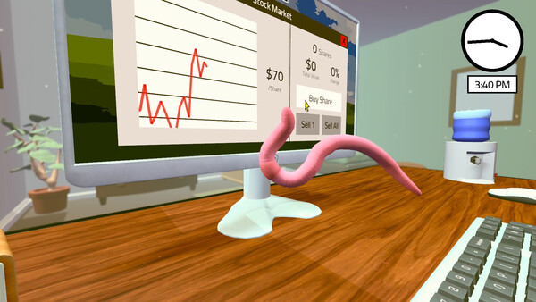 Be the Worm of Wall Street in this silly simulation game about working a remote finance job. Throw your spineless body around the keyboard to invest in the stock market and earn obscene amounts of money. Buy upgrades, train skills, and worm your way up to the promotion you've always dreamed of!