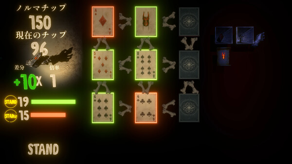 ReSoul:Jack is a turn-based blackjack roguelike. Draw from nine facedown cards, using only their relative size hints to guide your choices. Combine items creatively and survive each tribute requirement on your path toward rebirth.
