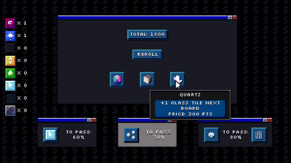 A fast retro puzzle poker casual game. Move card pieces around and build up powerful combos to deal damage! Balance between risks and rewards. Plan your board, use consumables, upgrade to get new cards new passives each stage to help you win! Try out new builds and see how far you can go!