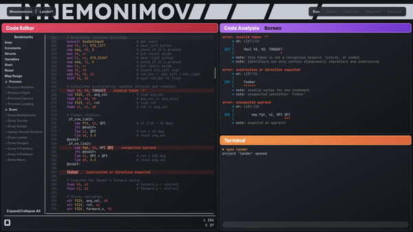 Mnemonimov is an assembly-based fantasy console with a retro monochrome screen. Experience the challenge and the fun of old-school game development without the headaches of real hardware.