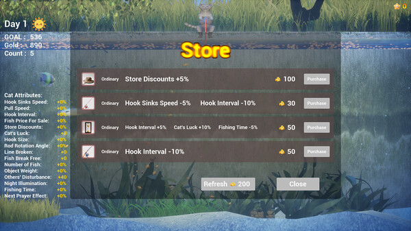Welcome to Merry Fishing Meow! 🎣This is a charming and laid-back fishing game where you play as an adorable cat. Cast your line and enjoy a purr-fectly delightful experience! Earn money by fishing with a clear goal. Day & Night Cycle. Rare fish, big Rewards. Mystery shop, random items. 🎣