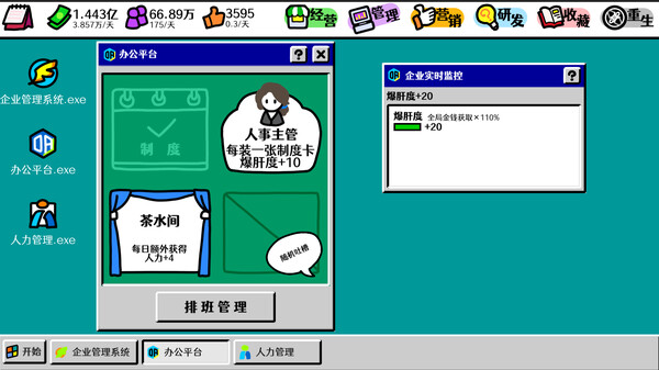 一款笑点密集的沙雕休闲游戏,主要玩法是经营+放置+AVG+收集,风格轻松愉快,有大量有趣的剧情和插图。沙雕画风加上脑洞大开的爽文剧情,玩法简单易懂,经营你的商业帝国,探寻世界未解之谜,名利双收,走上人生巅峰。