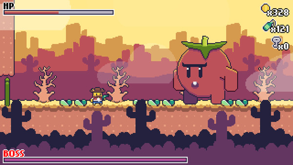 A retro style mini metroidvania game during Old West about "El Gatito", a lovely little "Pistolero" cat who needs to defend his hometown from evelish mutant vegetables!