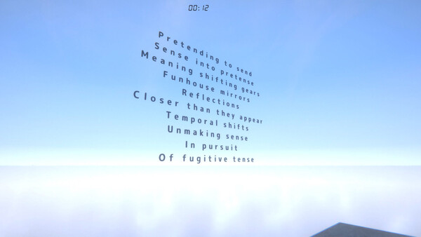 A surreal game about time and space....well, spacetime really. Start with 12 seconds of life and find ways to expand time and travel further and further, into a bizarre and surreal scape of islands in the clouds.