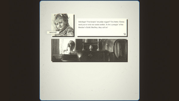 As an Inkslinger at Brassknee's renowned Wordshop, it's your job to write letters for the citizens of Isle Shammer. But through the veil of work lies forgotten trauma. A voice begins to speak to you in recurring daydreams, telling you about your tragic past in Nomania.