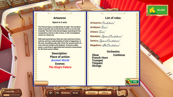 No swords. No space marines. Just passion, pressure, and performance—every note matters. Behind-the-scenes theater through eras: manage rehearsals, explore scores, navigate intrigue, ambition & reputation.