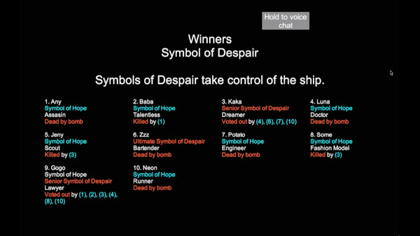 The game allows 4 to 10 players to experience co-op and betrayal. You must comlete tasks while bewaring of the monsters among you. Whether to make best of your social deception and reasoning skills or just play it as a crazy party game is all up to you!