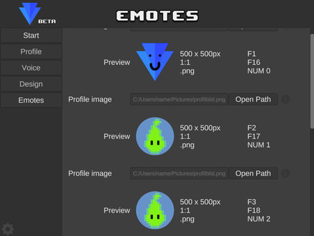 Voice Visualizer is a webcam alternative in which you can let a personalized picture pulsate with the sound of your voice. Express yourself with up to six emotes you can present to your audience.