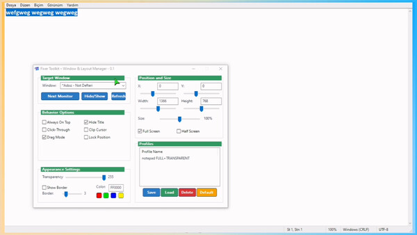 Take full control of your windows and games. Resize, move, go borderless or fullscreen, keep on top, add colorful borders, lock your mouse inside the window, and save your perfect layouts.