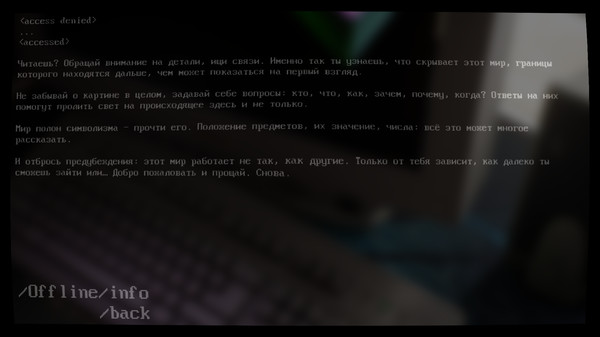 A story-driven quest in which the setting plays a key role. Pay attention to detail and look for connections, ask yourself questions, and never forget the bigger picture, learning to read the symbolism that surrounds you. Are you playing?