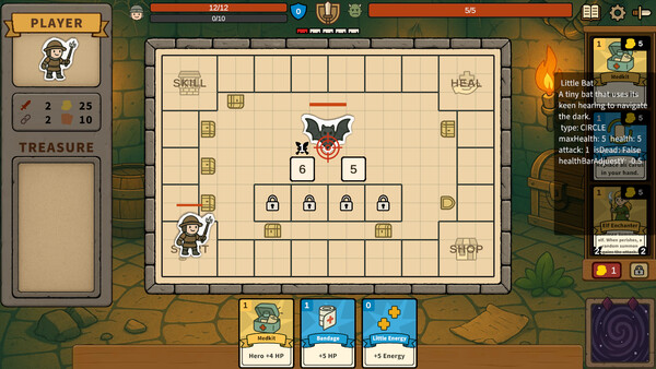 Multi-Use Cards: Eat Food to Heal, Throw them to Attack. No more dead hands! Start with 8 cards and battle through 13 challenging levels. Collect and combine over 200 unique cards to create thousands of powerful builds.