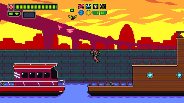 Boost and grapple around a cyberpunk cityscape in Kinetic Breakthrough, a high-speed metroidvania. Use your momentum to break through windows, destroy drones, and confront the artificial intelligence that keeps the city under its control.