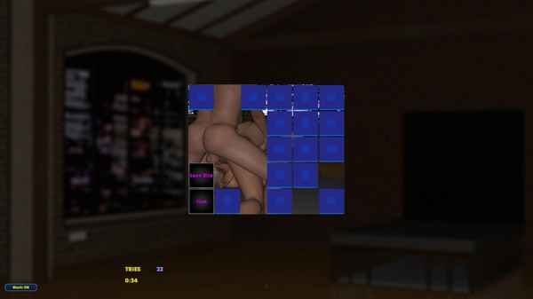 Solve the puzzles to reveal and collect pictures of a sexy girl and a guy, engaging in sex and BDSM acts, hidden behind pairs of cards which you have to match. Flip two cards, and if the numbers on them match, they will be removed from the board, revealing a unique image.