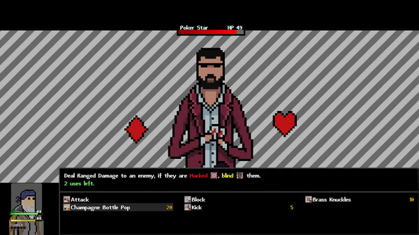 Gamble your way out of Eclipse Casino fighting 30+ bosses, learning 50+ skills, and meeting or recruiting over 100 different characters! A challenging roguelite turn-based rpg where you must escape the Shady Casino Owner by fighting and gambling your way out!