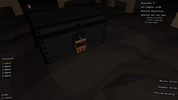 Decend by yourself or with friends down into the old fighting tunnels under France. Search for old equipment and complete objectives for king and country… but mostly to keep the oxygen pumps on. Earn your freedom through careful subterranean strategy or chaotic run-and-gun gameplay.