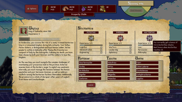 In this kingdom management RPG, you assume your father’s throne in Dalmatia to lead the kingdom, build alliances, fight rivalries and hear the pleas of your people. On the brink of change, you will define the political order. By your decisions, the future of Dalmatia is in your hands.