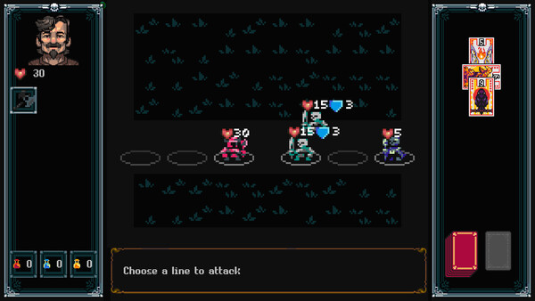 This is a hybrid between a card, board, and turn-based single-player game. Play cards in various ways, and discover iconic artifacts. Combine logical possibilities with an aspect of chance. Gradually map the world of this rogue-lite adventure. Walk through the portal and fight!