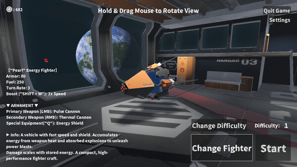 5Min Space Battle is a fast-paced third-person space shooter. Pilot different fighters through intense battles, eliminate enemy threats, and level up your fighter to boost its performance. Each fighter has unique combat capabilities, defining your playstyle in thrilling 5-minute skirmishes.