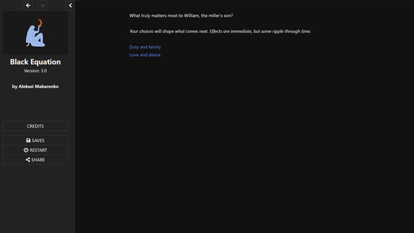 Decide the fate of the son of a tailor and a witch doctor infected with an incurable disease in an interactive story with multiple endings depending on your actions.