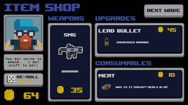 Vault Survivors is a post-apocalyptic top-down roguelike shooter where you must survive 20 minutes against diverse enemies and bosses. Master dozens of weapons across different characters, then return to your vault to chat with your companions and upgrade your character between runs.