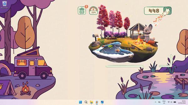 An adorable fox lives on your desktop, reacting to your typing to keep a campfire burning. Earn coins, upgrade, and decorate a lakeside camp in a transparent overlay. Cozy, zero-stress companion for work or study.