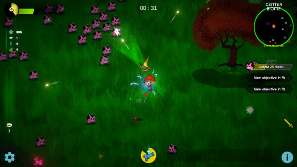 Microbes and Machines is a roguelite action game where you control a little bubble robot that fights against the forces of evil.