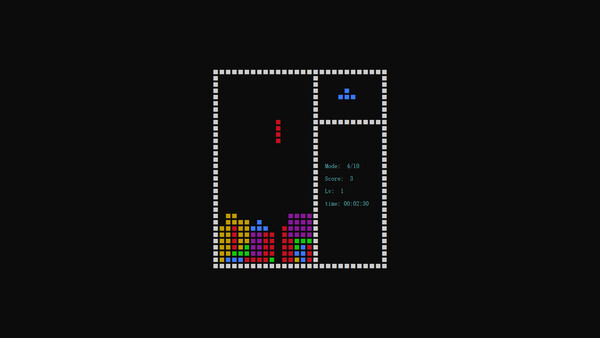 There are 110 modes available in this Blocks Dropping Game. 55 Single Player Modes. 22 Cooperation Modes achieved through local or remote gameplay. 33 Two Players PVP Modes achieved through local or remote gameplay.