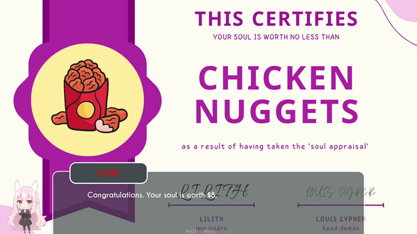 So strap on your gaming gear, grab some snacks, and let's get ready to make a deal with the cutest demon around. Lilith Wants to Buy Your Soul is the game that'll have you laughing, strategizing, and questioning the very essence of your gamer soul. Are you up for the challenge?