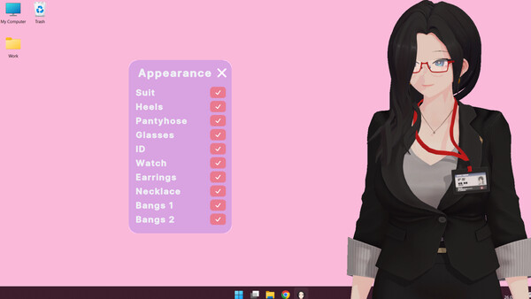 Create and customize your own girlfriend character and let her stay on your computer while chilling, watching movies, playing or even working.