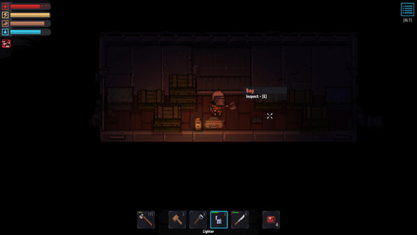ALG is a challenging top-down survival RPG. Explore an expansive, randomly generated world shrouded in darkness. Gather resources, craft items, construct buildings, fight strange creatures, and study magic and science to survive and solve the many mysteries of the forest.