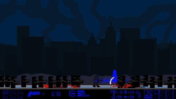 An intense, hardcore action side-scroller. Maneuver as a ninja killerbot through dynamic wastelands with 26+ specialized weapons. Dodge, dash, and dominate. A homage to Metroidvania and Roguelike: customize atomic evolution, breach intricate alert levels to decrypt the Oblivion Code...