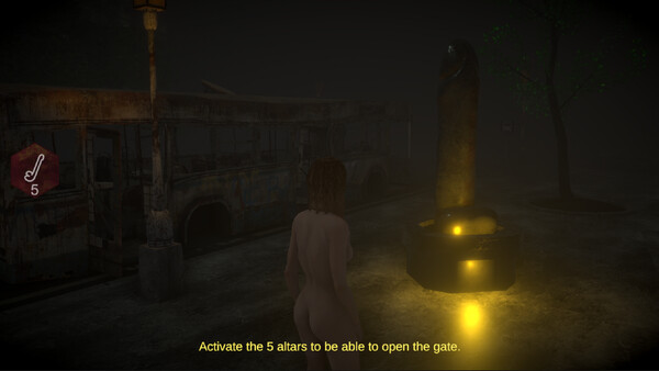 "Nude by Night" is an erotic horror survival game where Lia wakes up completely naked in a fenced-in nightmare zone, hunted by a sex demon queen. To escape, she must activate five mysterious altars through ritual self-pleasure to break the curse and unlock the gate to freedom.