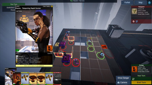 A sci-fi turn-based strategy game where you battle to conquer Cendovia. Choose your faction and combat style. Grow your army as you expand your territory. Customize your decks for each encounter as you adapt to the ever changing terrain. Put your troops to work or bring them into battle.