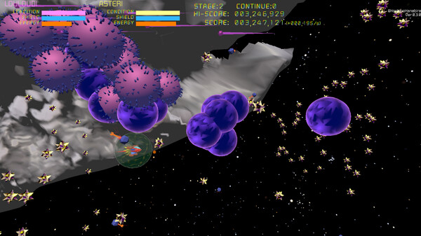 "3D STG with a 2D feel! Join the adventure to save the solar system! Ace pilots Louloudi & Asteri fight a massive virus. Twin-stick controls, sidestep & roll, dodge enemy attacks. Shield-life system for beginners; damage auto-recovers. Normal & Hard routes for all players!"