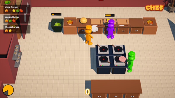 Welcome to the world's most chaotic place! Play solo or co-op with up to 6 players. Run a fast-food restaurant, and work with your friends to expand your business. Take orders, make burgers, and increase your earnings by dealing with customers.