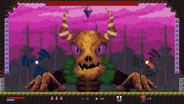 Explore a charmingly beautiful, hand-crafted pixel art world and help Violet on her journey searching for her sister. Uncover its mysteries, face its threatening foes, and run 'n gun your way through this challenging action-metroidvania - which will put your true platforming skills to the test.
