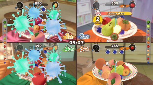 A brand new game in the hit 3D puzzle game "Fruit Mountain" where you combine fruits to make them bigger is finally here! This time, it's fruit battles!? There are plenty of versus modes that everyone can enjoy! Get together for online or local multiplayer! Keep stacking those fruits!