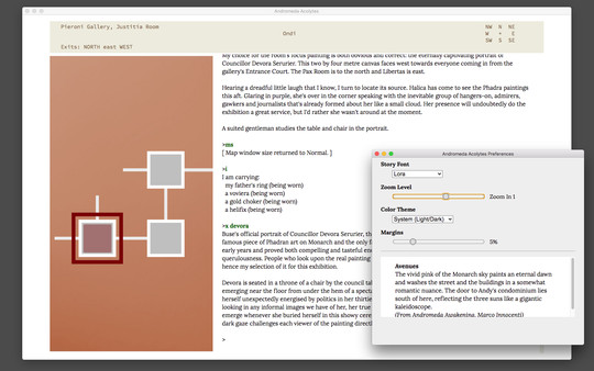 You play all four heroines in this big multi-chapter sci-fi text adventure. Negotiate underwater mechs, AIs, abandoned cities, crime, friendship, suspense, horror, humour, an art exhibition, virtual realities and a tank. Experience each PC via first-person prose as you puzzle, converse and explore.
