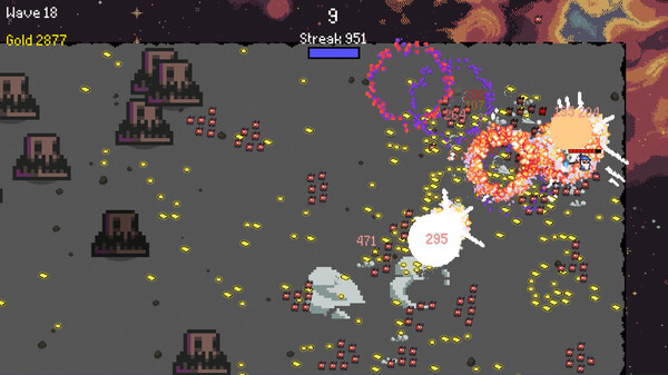 Your movement is controlled like a mouse cursor. You will earn money for killing enemies which will let you pay for weapons and spells. Mix and match magics to convert this bullet hell into a bullet heaven.