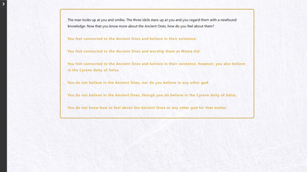 You are Nikaria. An agent of a mysterious god, sent to another country. Does the end justify the means? Is the will of the god above the law? Is the death of a non-believer insignificant? The decision is yours alone.