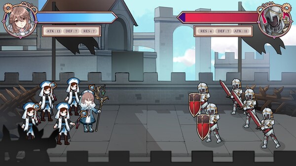 This is a turn-based card game with a mobile gacha style. You can obtain better equipment through combat and casual gameplay, accumulate enough resources to draw your desired powerful characters, and form a strong lineup to defeat even stronger enemies!