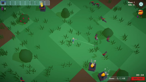 This game involves continuously defeating generated enemies to survive. When you defeat enemies, you have a chance to obtain gems, coins, or boxes. Accumulating gems allows you to level up, and upon leveling up, you can randomly acquire weapons or skills.