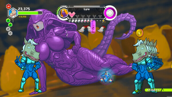 It's an action game about Waifus, Cyberpunk, Silly Jokes, Booties, Censors, Robots, Stupid minions and a ruthless AI. Rescue girls from corrupted clothing, and enjoy tons of fun in this shmup strip'em up-action! ADULTS ONLY!