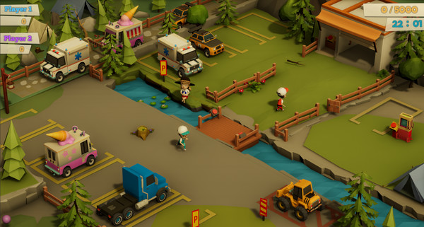 Pneumatic Panic is a physics-based chaotic co-op road trip game for one to four players. Working as a team, you and your fellow companions must arrive at the campgrounds with your supplies, avoiding obstacles along the way.